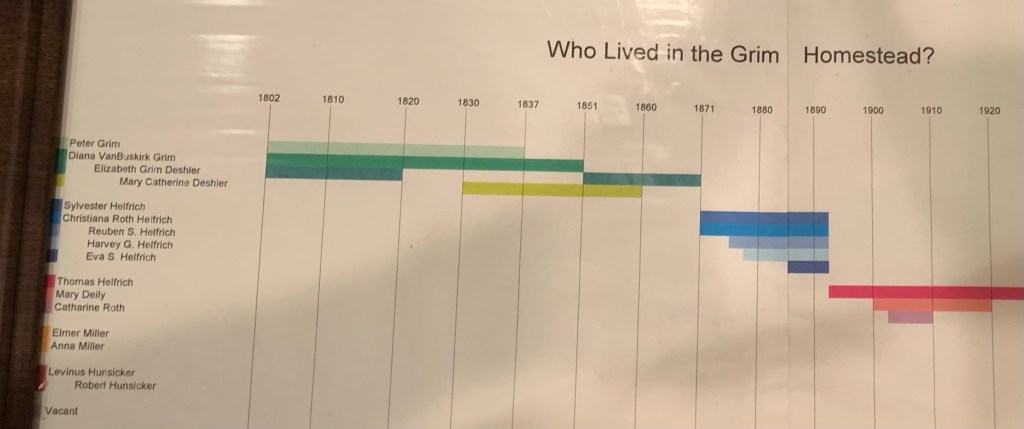 We did not go walk about today. My blue inhaler fell out of my pocket in Marietta’s car and she offered to deliver it to the hotel. So we asked her to pick up Bobby, my brother, on the way over as Bobby was giving us a private tour of the Helfrich’s Spring Grist Mill and the Grim House the associated farm house where my great grandparents had lived when they owned the mill.