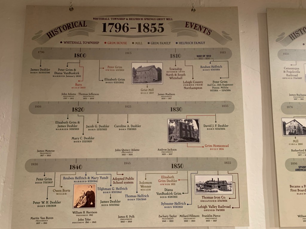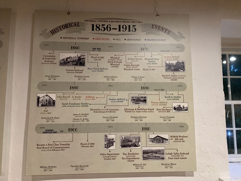 The Grist Mill is across the road and has a great display about the history of the Lehigh Valley and surrounding area. Both buildings are open on Saturdays through the summer and for special occasions the rest of the year.