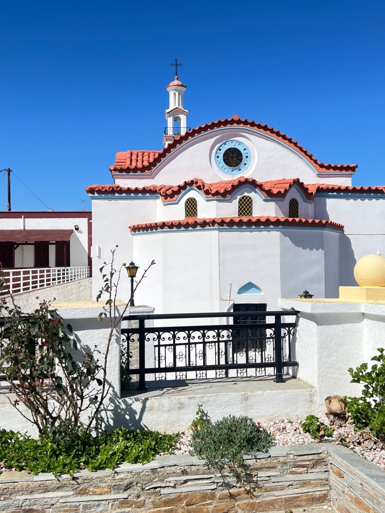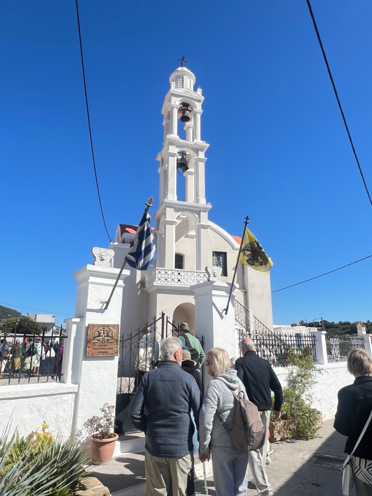 But today we joined a coach tour down the west coast of Rhodes which then took us into the central hills and mountains to a few of the small villages. We visited a Greek Orthodox Church and had fresh orange juice in the village of our tour guide’s grandparents. His grandfateher was the priest of the church and teacher at the local school. The school is now a museum of village life.