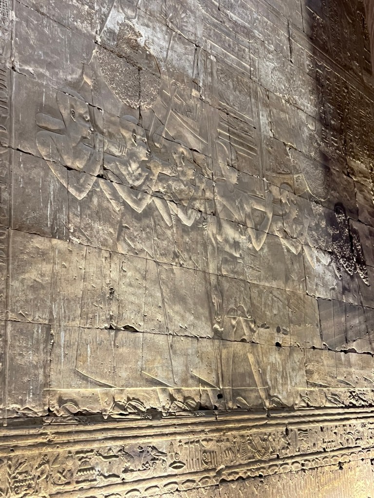 But on the Friday morning we were in Edfu in Aswan Province. One of the included tours was to Temple of Horus, the god of the Owl. It is farthest from the Nile so it wasn’t subject to floods, but it was modified by every conquering hero raging through Egypt.